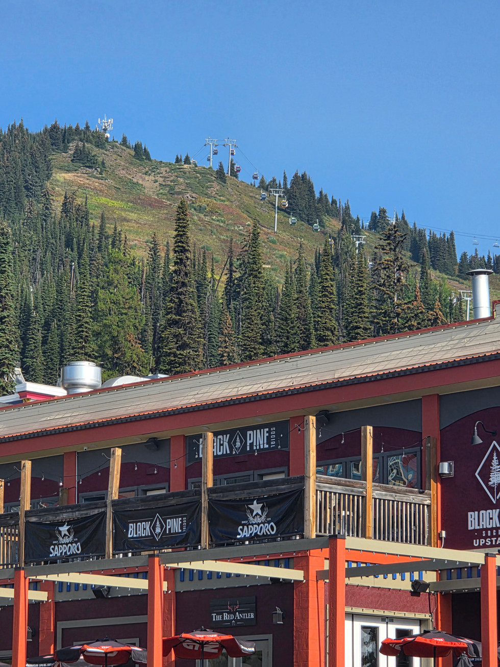 Das Skigebiet liegt auf 1600M.ü.Meer und geht bis knapp auf 2000M. ü Meer hinauf. Die Trails, sei es für Country-Crossing, Downhill oder schlicht wandern sind gut beschildert und teilweise getrennt und es ist richtig schön wie alle aufeinander Rücksicht nehmen. Leider konnten wir die Aussicht nicht geniessen, da Rauchschwaden von den Waldbränden im Norden den Himmel trübten. Unser neues Schattenzelt bewährte sich hervorragend, denn Bäume gab es auf dem Campground keine.