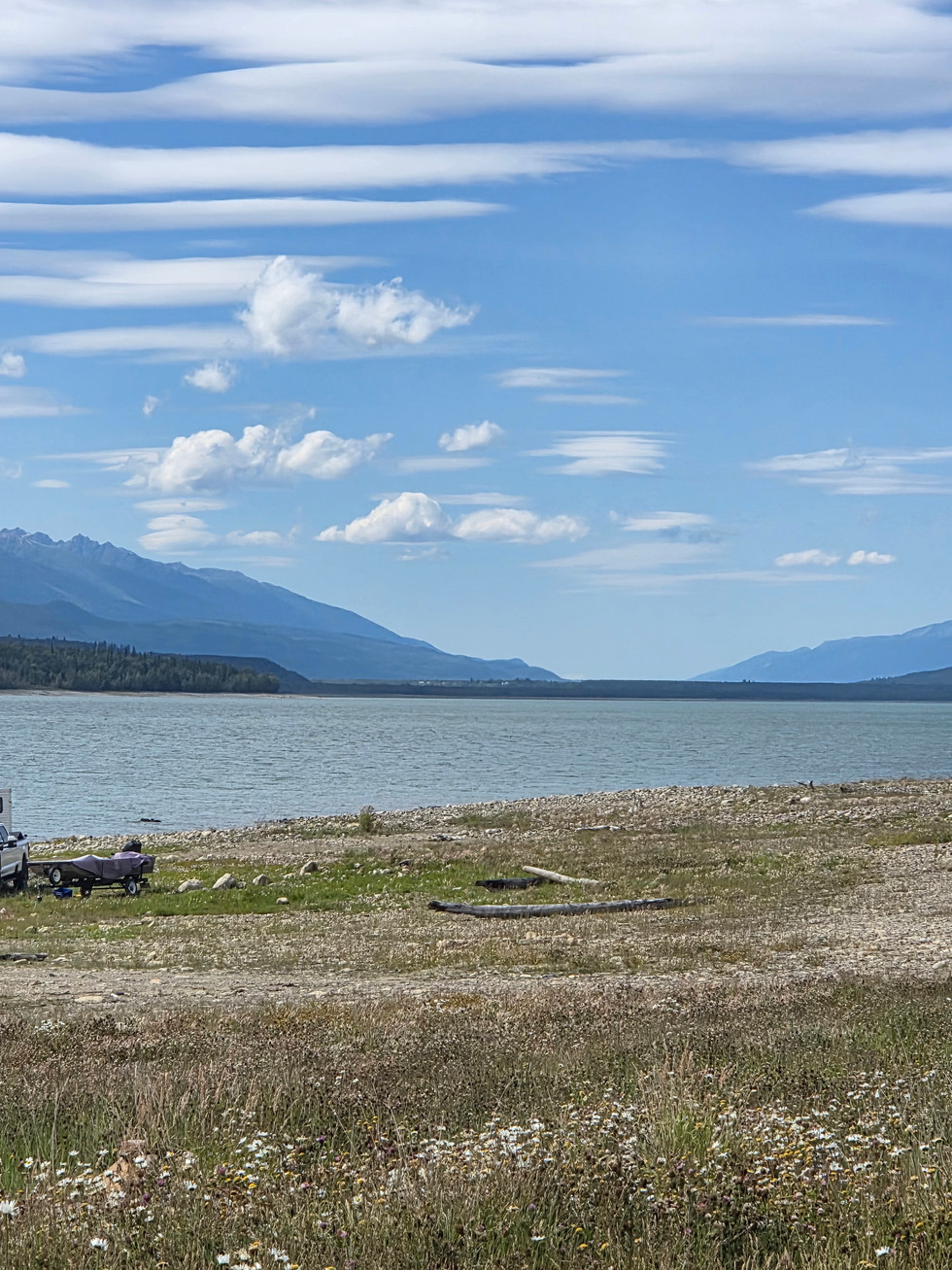 Nach den erholsamen Tagen am Horse Lake fuhren wir auf dem Highway 24 nach Osten bis Little Fork und von da Richtung Norden nach Valemount. Wir übernachteten auf einem Golfplatz und waren fast alleine. In Valemount fanden wir herrliche Bedingungen fürs Biken, sei das für Country-Crossing, Trails für Bergfahrten und Downhill oder auf einsamen Gravelroads an den Ufern des Kinbasket Lake.